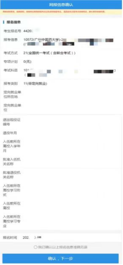 注意:請仔細(xì)核對網(wǎng)報信息,確認(rèn)無誤后,勾選“我已確認(rèn)以上報名信息準(zhǔn)確無誤”并點擊“確認(rèn),下一步”。