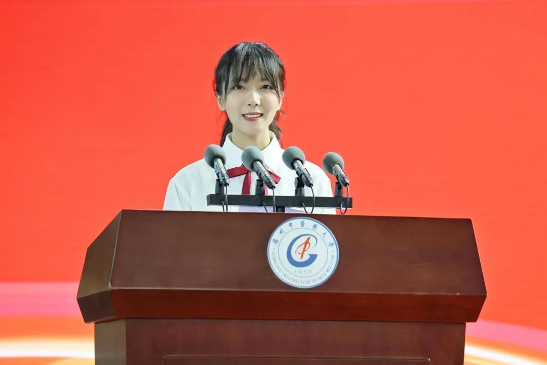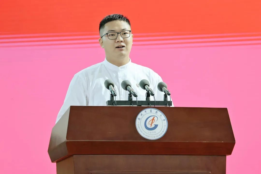 典禮上,學(xué)校為2023級(jí)研究生新生創(chuàng)新培養(yǎng)專(zhuān)項(xiàng)獎(jiǎng)勵(lì)資助獲得者進(jìn)行表彰,校長(zhǎng)王偉向獲獎(jiǎng)代表頒發(fā)證書(shū)。校長(zhǎng)王偉作了題為《把握陰陽(yáng)之道,篤志博學(xué),開(kāi)啟人生新篇章》的開(kāi)學(xué)致辭,勉勵(lì)同學(xué)們將青春奮斗匯入新時(shí)代,融入中國(guó)夢(mèng),融入中醫(yī)藥傳承創(chuàng)新發(fā)展中,努力為中醫(yī)藥事業(yè)添磚加瓦。博士生導(dǎo)師邱士軍教授作為教師代表發(fā)言,他寄語(yǔ)同學(xué)們要敢于探索人生的多彩之光,用信念明燈探尋光的方向,用扎實(shí)本領(lǐng)助燃激情,以十足的真誠(chéng)追隨光的腳步,拓寬視野在廣闊天地競(jìng)逐光的絢爛,以飽滿(mǎn)熱情的姿態(tài)迎接新挑戰(zhàn),開(kāi)啟精彩人生。2017級(jí)中醫(yī)學(xué)八年制張開(kāi)源(中醫(yī)專(zhuān)碩)代表在校學(xué)生發(fā)言,與新生分享了關(guān)于大學(xué)期間如何成為時(shí)間的主人、找到適合自己的最優(yōu)解、成就自我三個(gè)問(wèn)題的思考與心得。2023級(jí)博士研究生張璐代表研究生新生發(fā)言,立志在“胸懷祖國(guó)、服務(wù)人民”的使命擔(dān)當(dāng)中去追逐實(shí)現(xiàn)夢(mèng)想,做一名人民的好醫(yī)生、中醫(yī)藥的好傳人、新時(shí)代的好青年、廣中醫(yī)的好兒女。