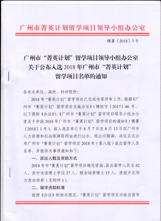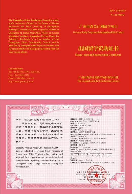 我校潘文君同學(xué)獲得廣州市“菁英計(jì)劃”留學(xué)項(xiàng)目資助