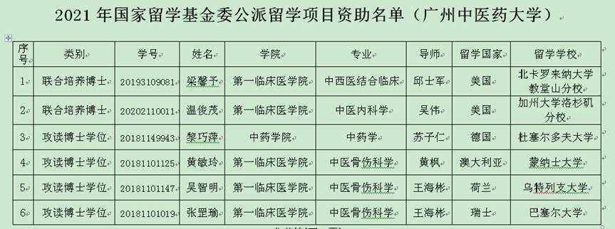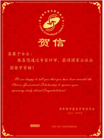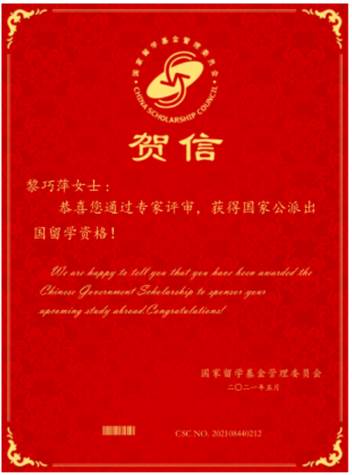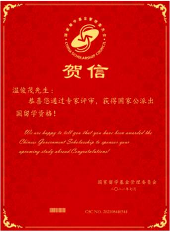 近期,國家留學(xué)基金管理委員會(huì)(China Scholarship Council,CSC)公布了2021年“國家建設(shè)高水平大學(xué)公派研究生項(xiàng)目”的評審結(jié)果,我校溫俊茂等6名同學(xué)獲得該項(xiàng)目資助,其中溫俊茂等2名研究生將以聯(lián)合培養(yǎng)博士研究生身份赴美國留學(xué),黃敏玲等4名研究生將分別赴澳大利亞、歐洲等國家攻讀博士學(xué)位。