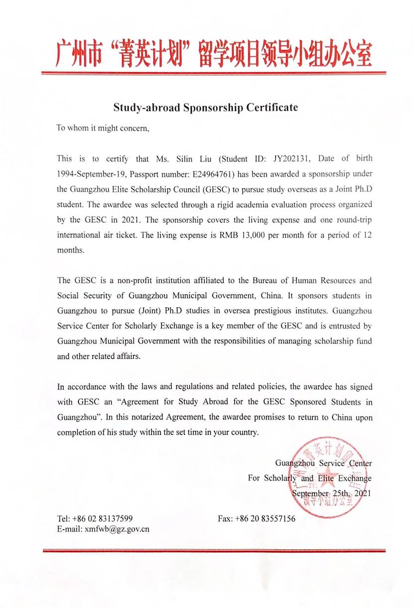 近日,我校第一臨床醫(yī)學院2020級博士研究生劉思琳(導師:中醫(yī)內(nèi)科學李靜教授)獲得2021年廣州市“菁英計劃”留學項目立項。