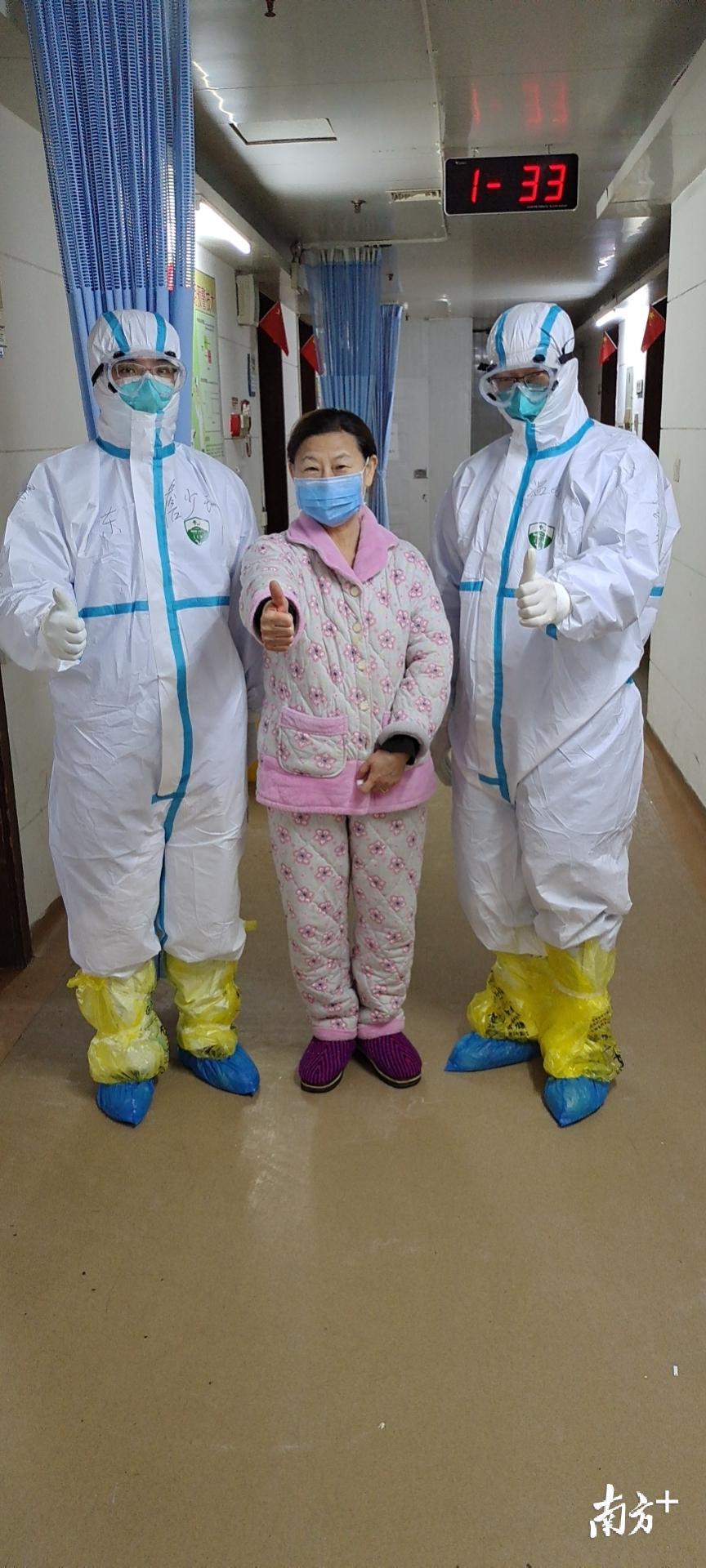 廣州中醫(yī)藥大學(xué)第一附屬醫(yī)院團(tuán)隊(duì)隊(duì)長(zhǎng)溫敏勇(右一)、支部書記詹少鋒(左一)與病人。