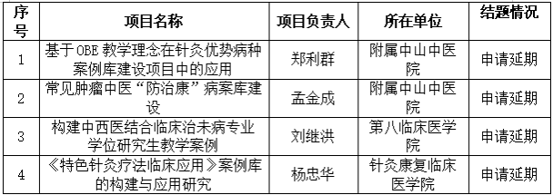 另有4項2024年度專業(yè)學(xué)位研究生教學(xué)案例庫建設(shè)培育項目,經(jīng)項目負(fù)責(zé)人申請,所在培養(yǎng)單位審批同意,申請延期結(jié)題,具體如下: