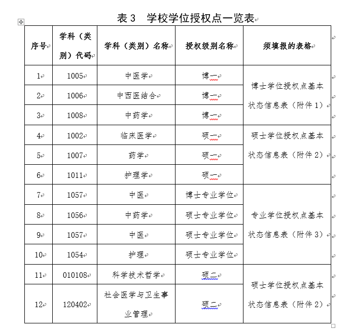 各學(xué)位授權(quán)點需填報的信息表及建設(shè)單位情況見下表: