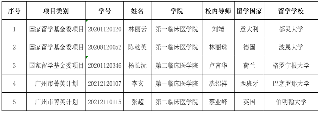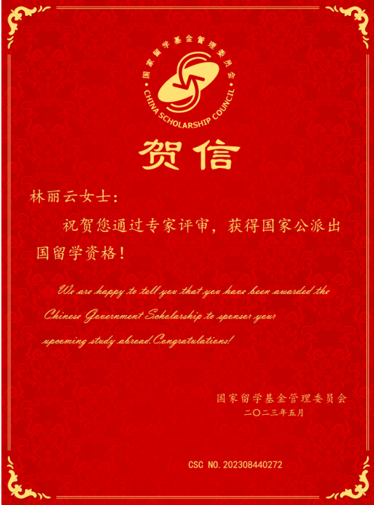 近日,根據(jù)國家留學(xué)基金委公布的2023年國家建設(shè)高水平大學(xué)公派研究生項目錄取結(jié)果,我校林麗云等3名碩士研究生將以攻讀博士學(xué)位形式,分赴意大利、德國和荷蘭留學(xué)。根據(jù)廣州市“菁英計劃”留學(xué)項目領(lǐng)導(dǎo)小組辦公室公布的2023年廣州市“菁英計劃”留學(xué)項目公派出國留學(xué)人員名單錄取結(jié)果,我校李玄、張超等博士研究生獲得資助,分赴西班牙、英國留學(xué)。